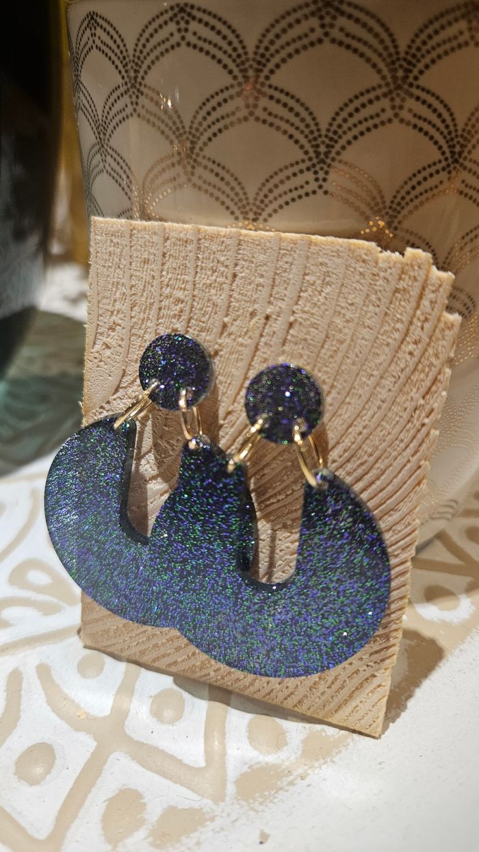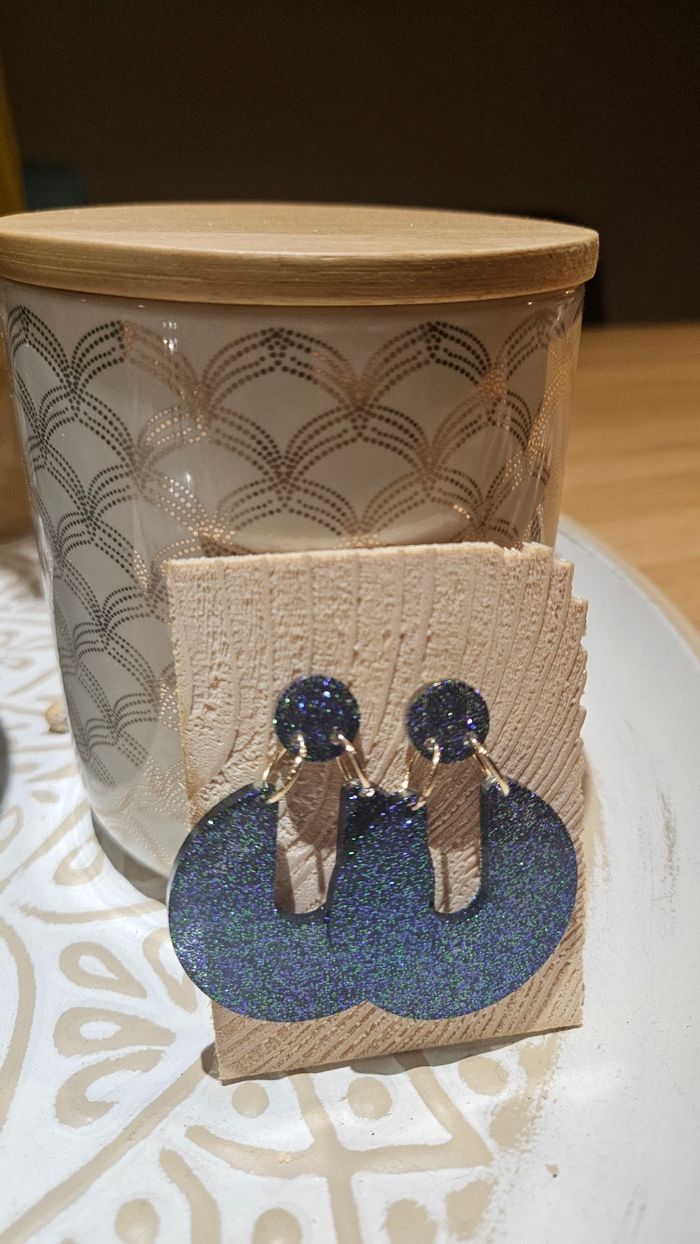 Boucles d'oreilles paillettes faites main en résine epoxy