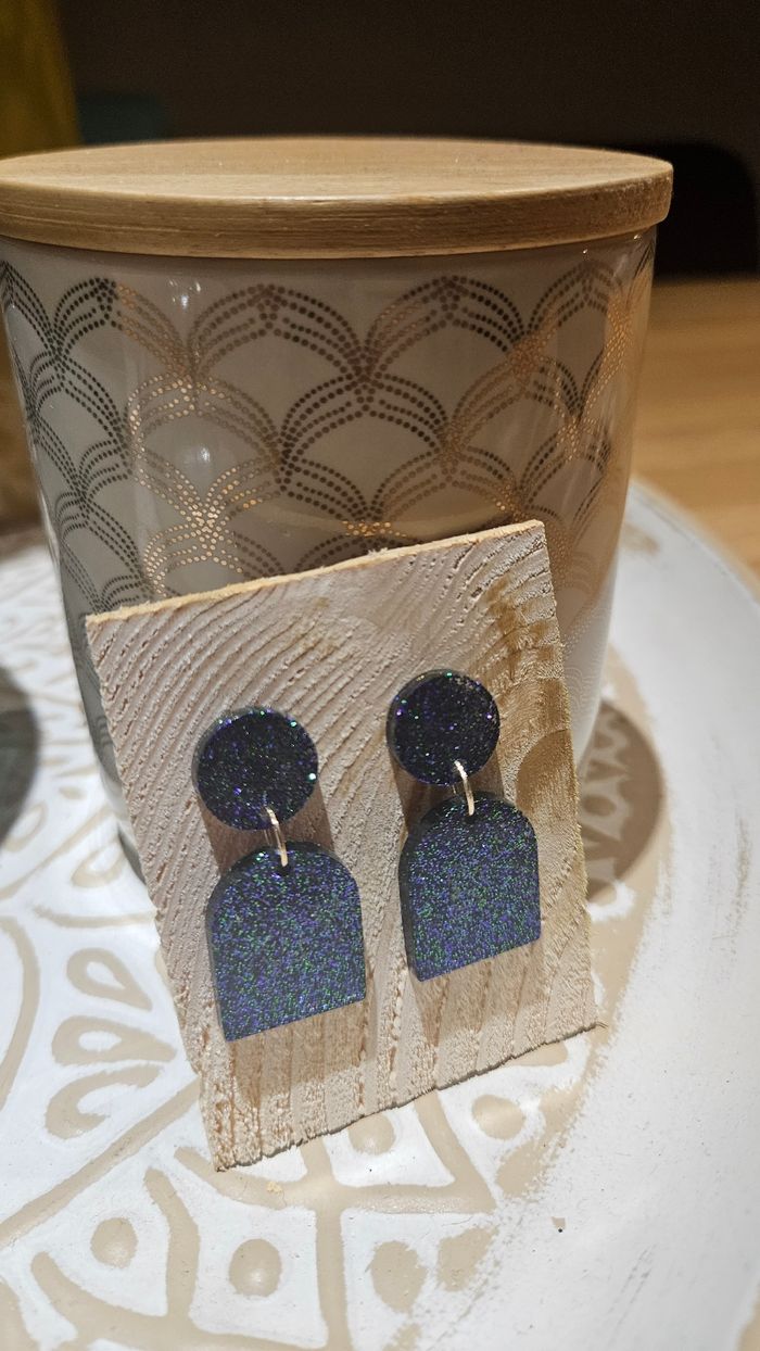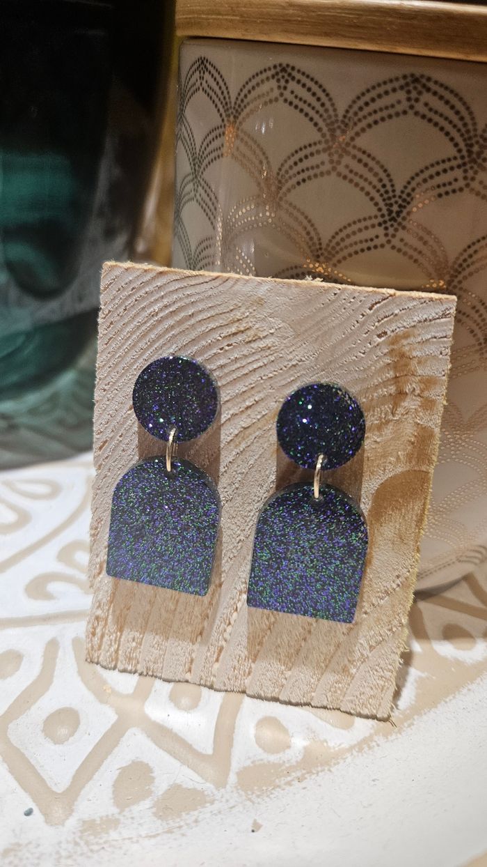 Boucles d'oreilles paillettes faites main en résine epoxy