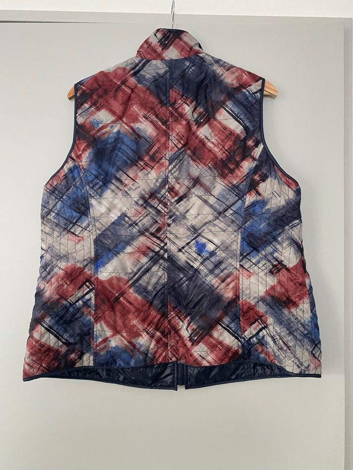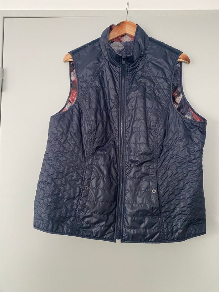 Je vends cette veste sans manches réversible de la marque Betty Barclay, dans des tons marine et imprimé voir photos - Type de produit : Veste sans manches - Marque : Betty Barclay - Taille : 42 - XL - Couleur : Marine / Turquoise - Caractéristiques : Fermeture zippée - Lavée 🧼 N'hésitez pas à me contacter pour plus d'informations ou de photos.
