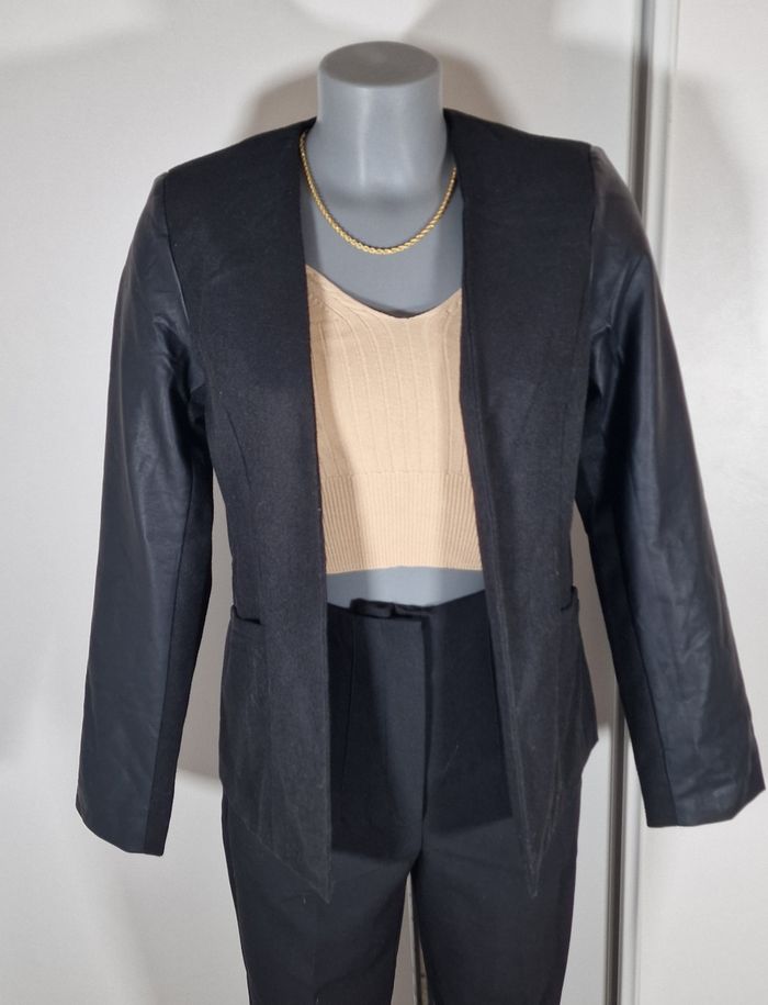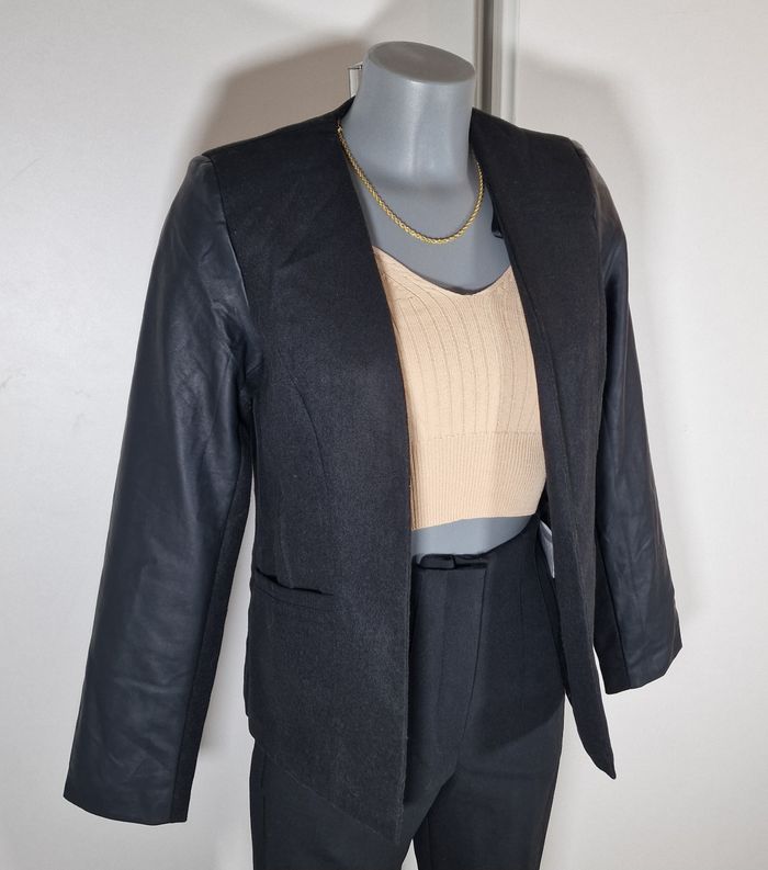 Blazer Brave Soul pour femme, neuf avec étiquette, jamais porté. Coupe élégante et moderne, facile à porter au quotidien comme pour une tenue plus habillée. ●Détails : -Marque : Brave Soul -Taille : S / UK 10 -Couleur : noir -Coupe : droite -Manches en matière type simili cuir -Matière : 100 % polyester -Munie de vraies poches 📏 Mesures à plat : •Épaules : 36 cm •Aisselle à aisselle (poitrine) : 43 cm •Longueur totale : 64 cm •Manches : 61,5 cm 📦 État : neuf avec étiquette Envoi soigné et expédition rapide.