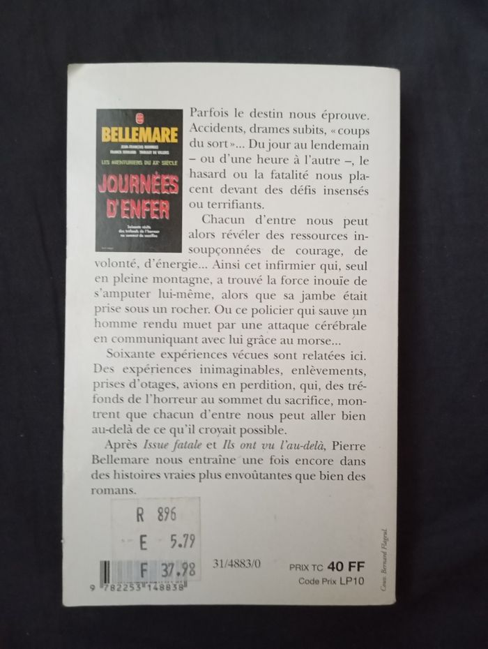 Je vends ce livre de Pierre Bellemare, "Journées d'enfer", une collection d'histoires de l'aventure du XXe siècle. - Titre : Journées d'enfer - Auteur : Pierre Bellemare - Éditeur : Le Livre de Poche - Genre : Policier Bon état N'hésitez pas à me contacter pour plus d'informations !
