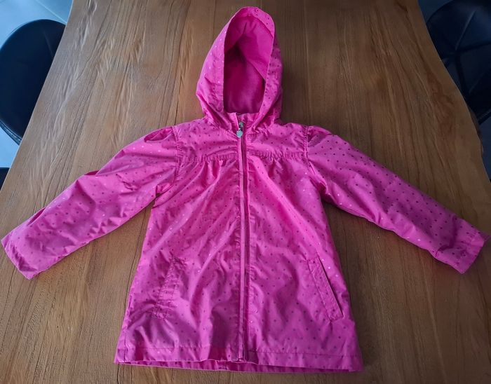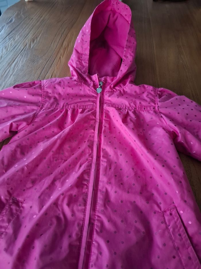 Veste imperméable pour enfant, taille 5 ans, couleur rose avec petits pois discrets. Idéale pour la mi-saison et les jours de pluie 🌧️ Matière légère, coupe confortable. Capuche intégrée. Fermeture zippée sur le devant. Deux poches pratiques. Très bon état général, pas de trous ni de taches. Parfaite pour l’école, les sorties ou les promenades. 🏠 Maison non-fumeur Envoi rapide 📦 N’hésite pas à me contacter pour toute question !