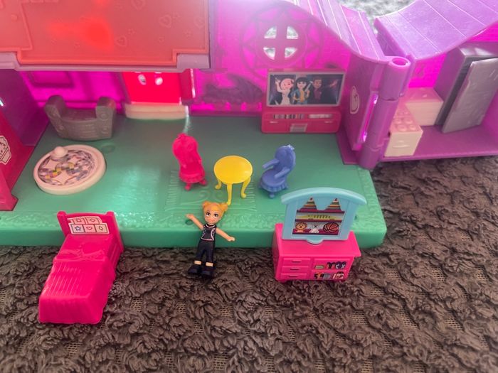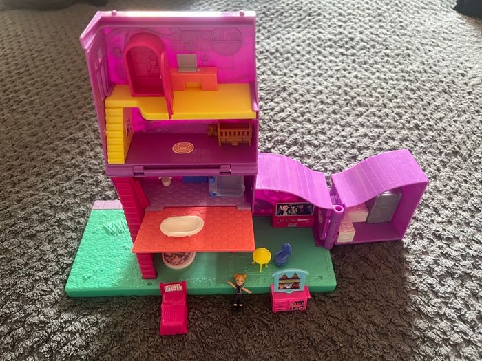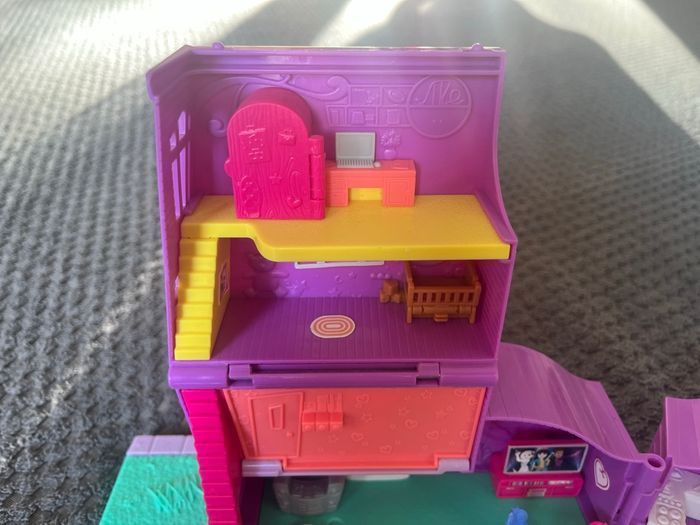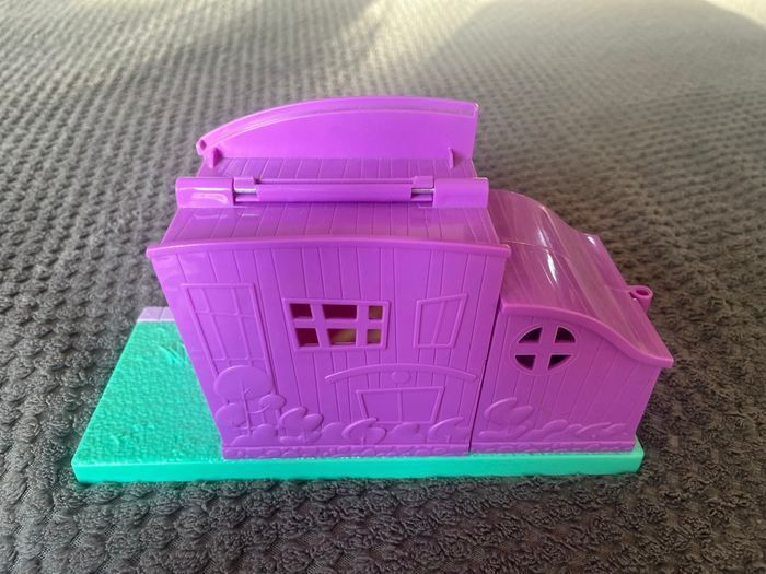 Maison Polly pocket en bon état mais incomplet 1 Table et 2 chaises 1 lit 3 personnages 1 commode