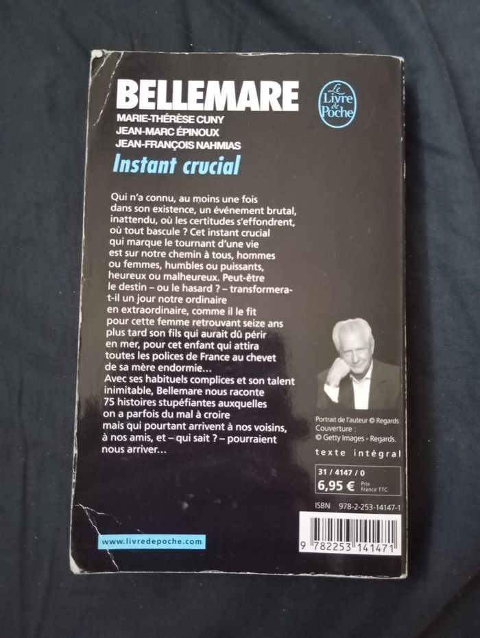 Je vends ce livre policier "Instant crucial" de l'auteur Pierre Bellemare. - Titre : Instant crucial - Auteur : Pierre Bellemare - Éditeur : Le Livre de Poche - Genre : Policier Bon état N'hésitez pas à me contacter pour plus d'informations !