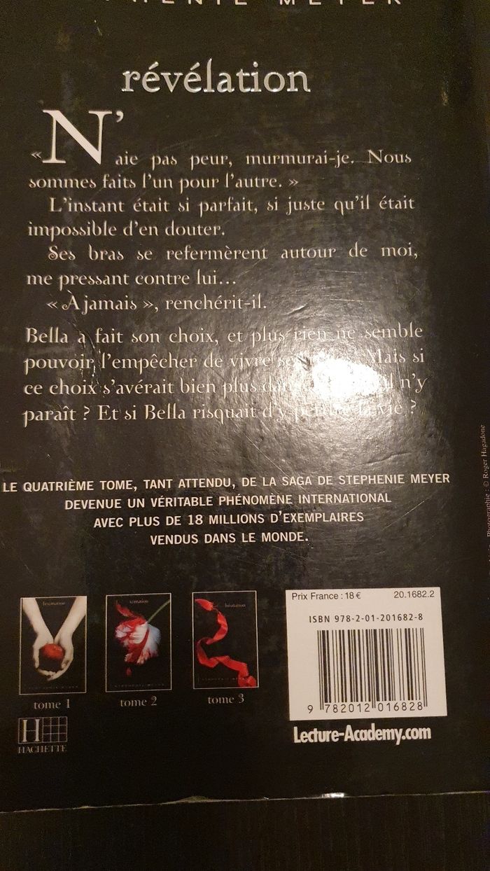 Je vends ce roman "Révélation" de Stephenie Meyer de la saga "Twilight".