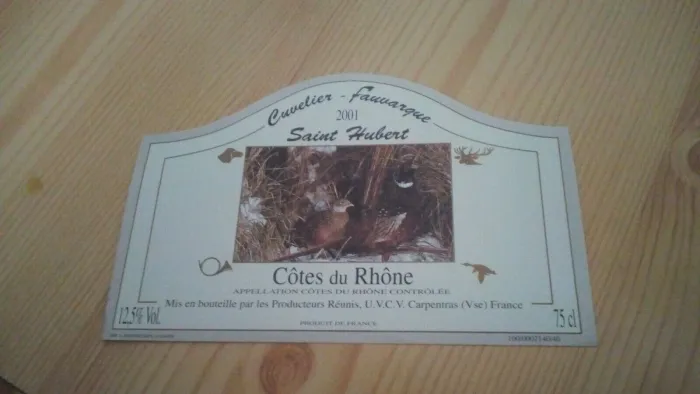 Etiquette de vin Saint Hubert Côtes Du Rhône 2001 Neuf -