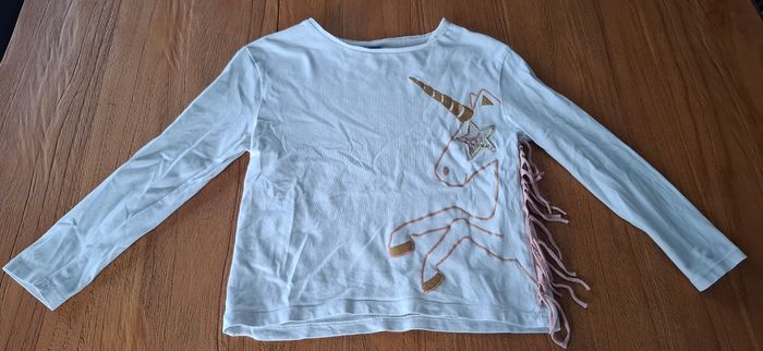 👕 T-shirt manches longues fille blanc – licorne & franges - photo numéro 1