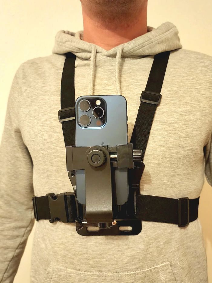 Envoie 24 heures Neuf jamais utilisé Support de téléphone ajustable pour filmer en toute liberté ! Se fixe sur le torse grâce à un harnais réglable, idéal pour le vlogging, le sport, le bricolage ou toute activité nécessitant d'avoir les mains libres. Compatible avec la plupart des smartphones. Léger, stable et facile à utiliser. Parfait pour capturer des vidéos en vue subjective !"