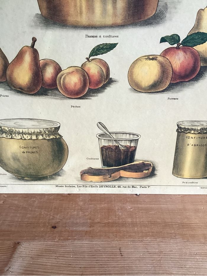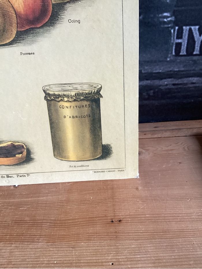 Affiche cartonnée « les confitures» Dimensions: 62 cm sur 48 cm Coin un peu abîmés Traces d’usure d’usage