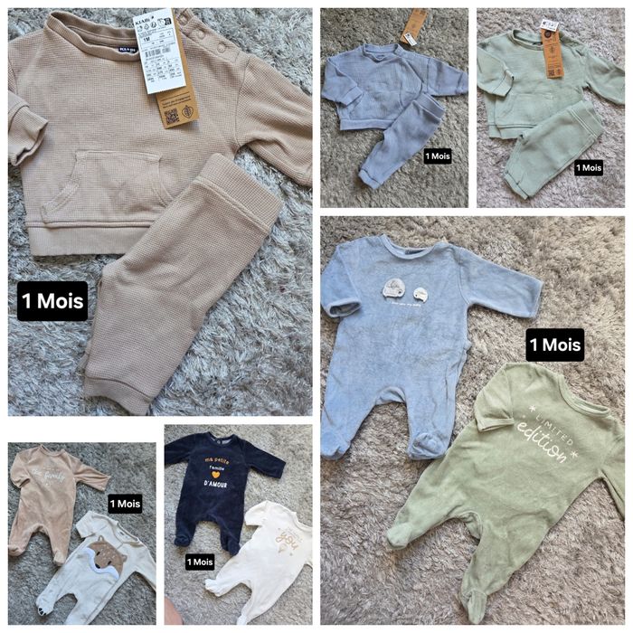 Lot 3 ensemble jogging velour côtelé gaze de coton NEUF 1 mois collection récente 2025 2026 = 9€ unité 25€ les lot ( 15€ eb mag ) Pyjama 2€ unité ( neuf ou peu porté ) Body 0.50/unités