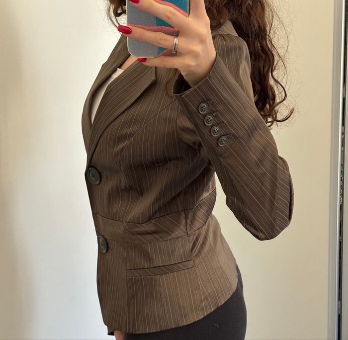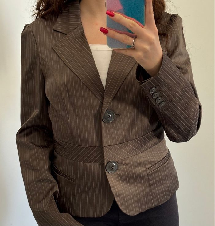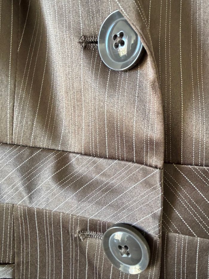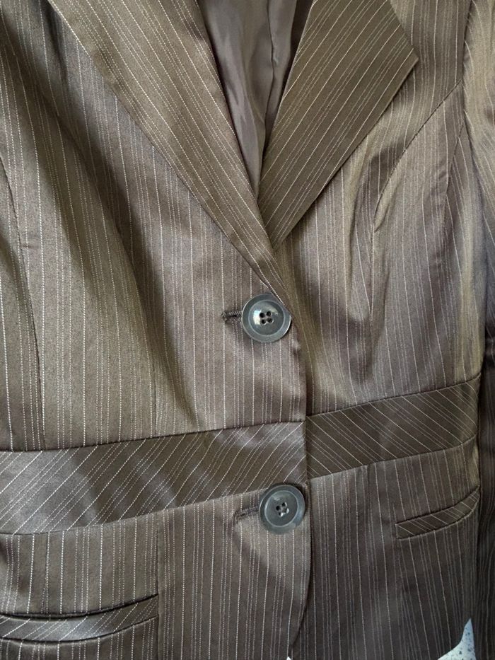 Blazer/tailleur rayé marron brillant Ajusté à la taille, épaulettes Aucune poche Taille 36 51% coton Excellent état #djerf