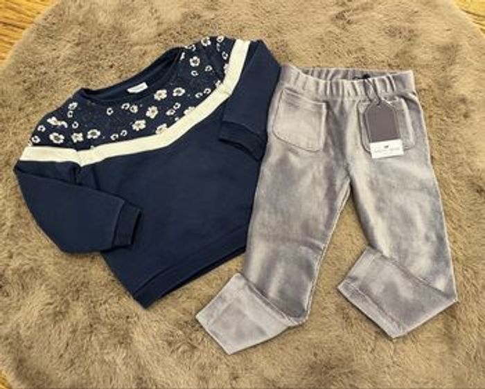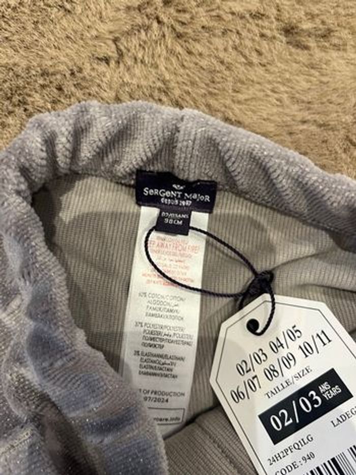 Leggin velours sergent-major neuf, gris avec paillettes, 3 ans Sweat-shirt TAO tbe, 4 mais taille 3 ans
