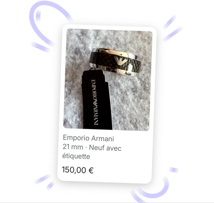 Emporio Armani Bague pour homme EGS1602040 Bague Emporio Armani pour homme en acier inoxydable. Couleur: argent Logo Eagle: 5,5 mm x 2,65 mm / hauteur de bague: 9 mm / largeur d'anneau 21 mm Description Cette bague Emporio Armani pour Homme est ornée d'un motif géométrique avec logo sur une bande en Acier Inoxydable poli. - Type de produit : Bague - Univers : Homme - Marque : Emporio Armani - Matière : Acier inoxydable - Référence : EGS1602040 État neuf. N'hésitez pas à me contacter pour plus d'informations.