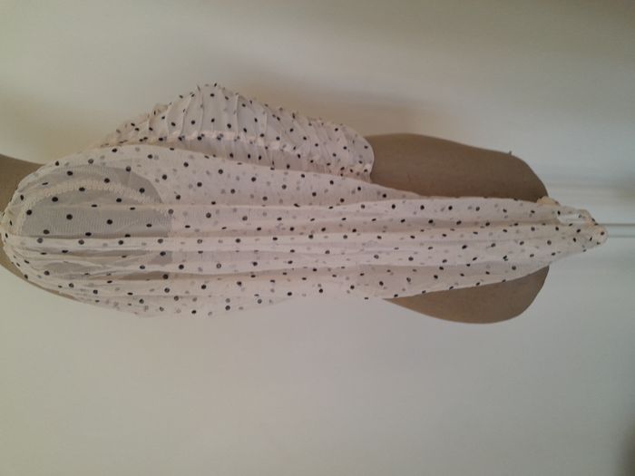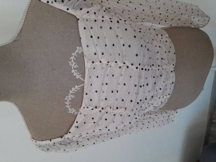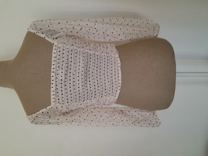 Croc top, manche longue transparente, imprimé pois, smocké au dos Longueur : 25cm Aiss / Aiss : 37cm Matière : 100 % Voile