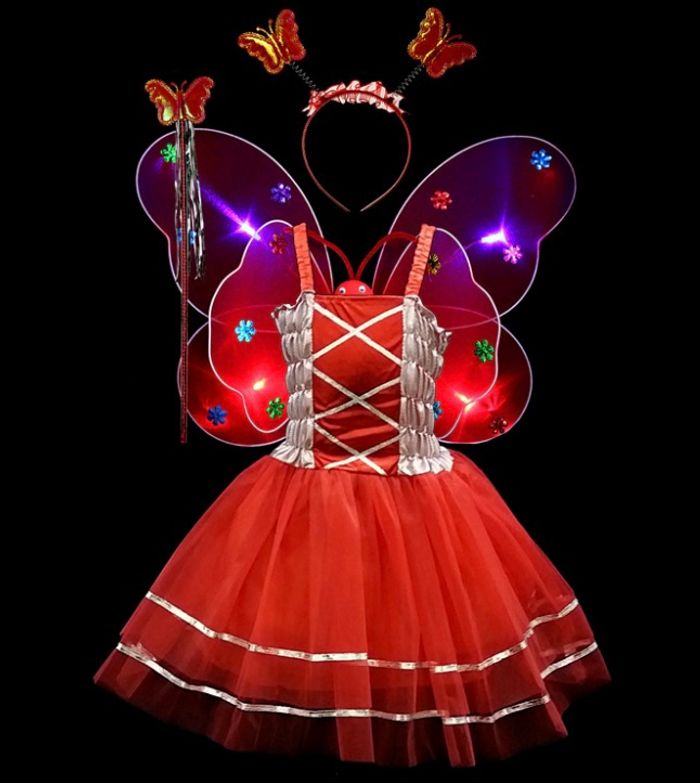 Déguisement robe princesse rouge et ces accessoires (aile de papillon, serre tête, baguette). 1 taille disponible : - 4-5ans : longueur de la robe 70cm, Vendu dans leur pochette d’emballage d’origine, idéal pour faire un cadeau ! Expédition rapide après votre commande.