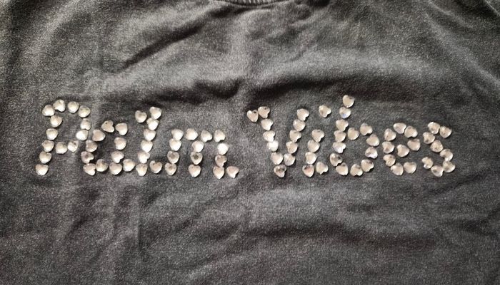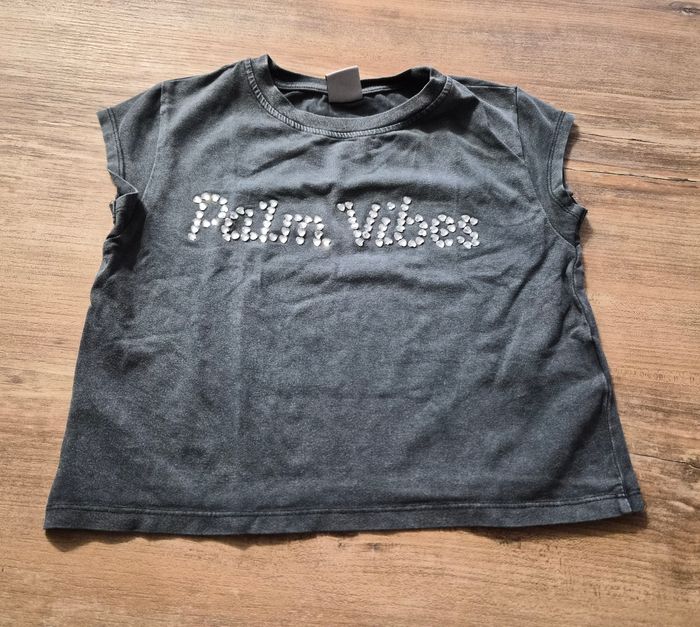 Joli tee-shirt Inscription "palm vibes " en strass en forme de cœur Taille 8/9 ans #fille8anstattoogirl_3 #fille9anstattoogirl_3