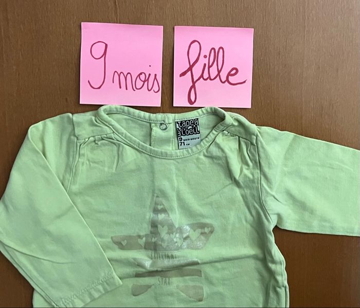 Bonjour, A vendre t-shirt taille 9 mois de la marque Tape à l’œil: 1€50 Il a été porté voir les photos. Mis sur d’autres groupes de vente Regardez dans mon dressing j’ai des vêtements garçon du 3 mois à 10 ans Et des vêtements fille de la naissance à 4 ans