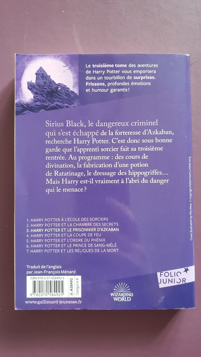 Je vends le troisième tome de la saga Harry Potter: Et le prisonnier d'Azkaban. Très bon état.