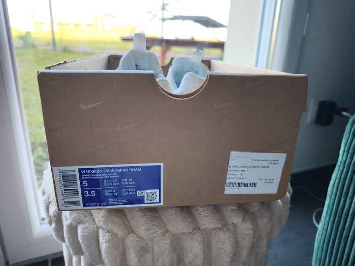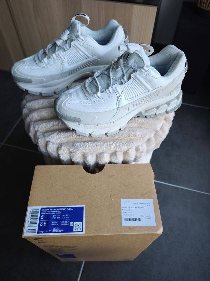 Magnifique paire de Nike Zoom vomero roam en taille 35.5 Elles sont neuves dans la boîte d'origine (il n'y a juste pas le couvercle de cette boîte). Porté dans la maison juste pour les essayer mais elles sont malheureusement trop petite...
