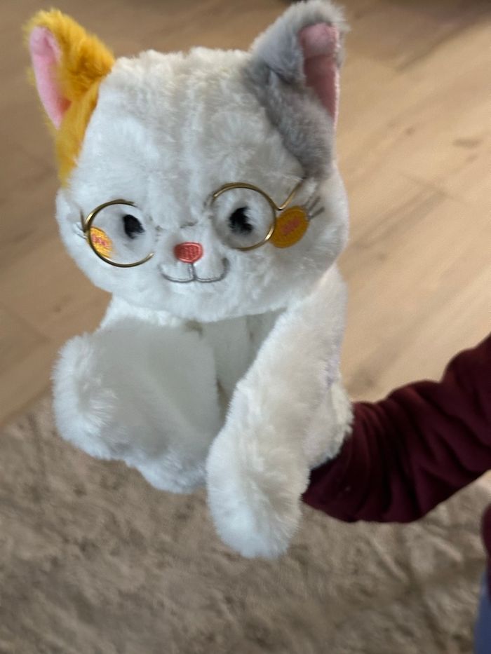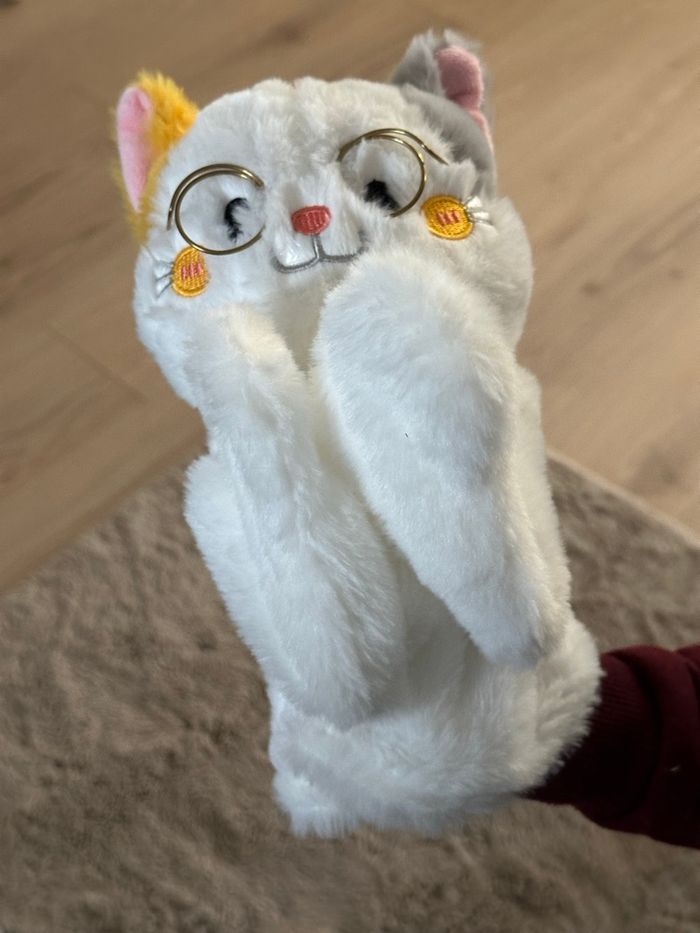 Doudou chat mignon, tout doux 30cm environ Ma fille de 4 ans mets sa main dedans et fais boxer le doudou😅 Parfois c'est Maman ou Papa qui faisons bouger le doudou/marionnette😊
