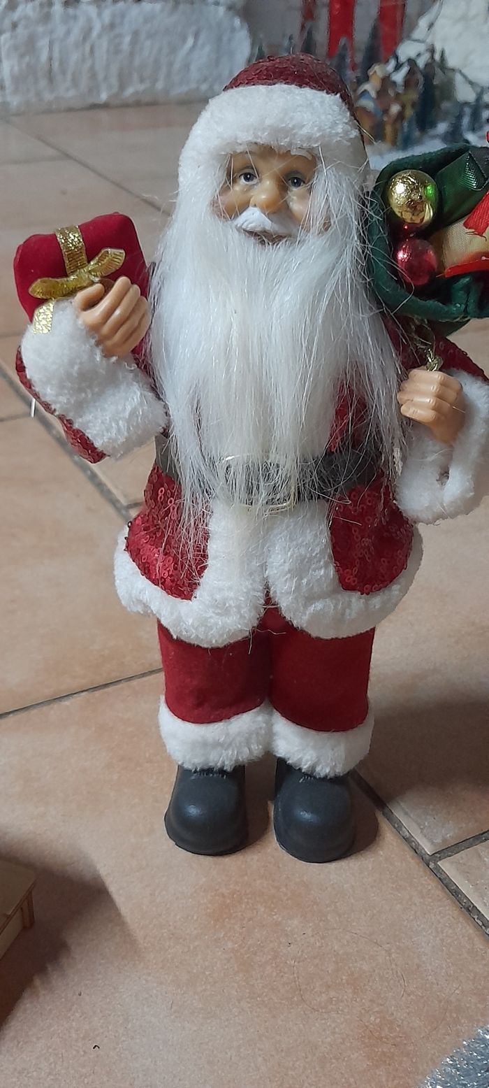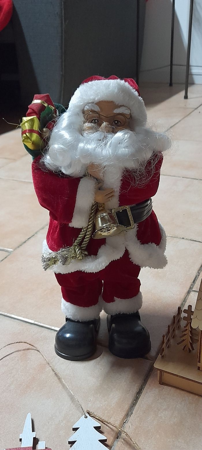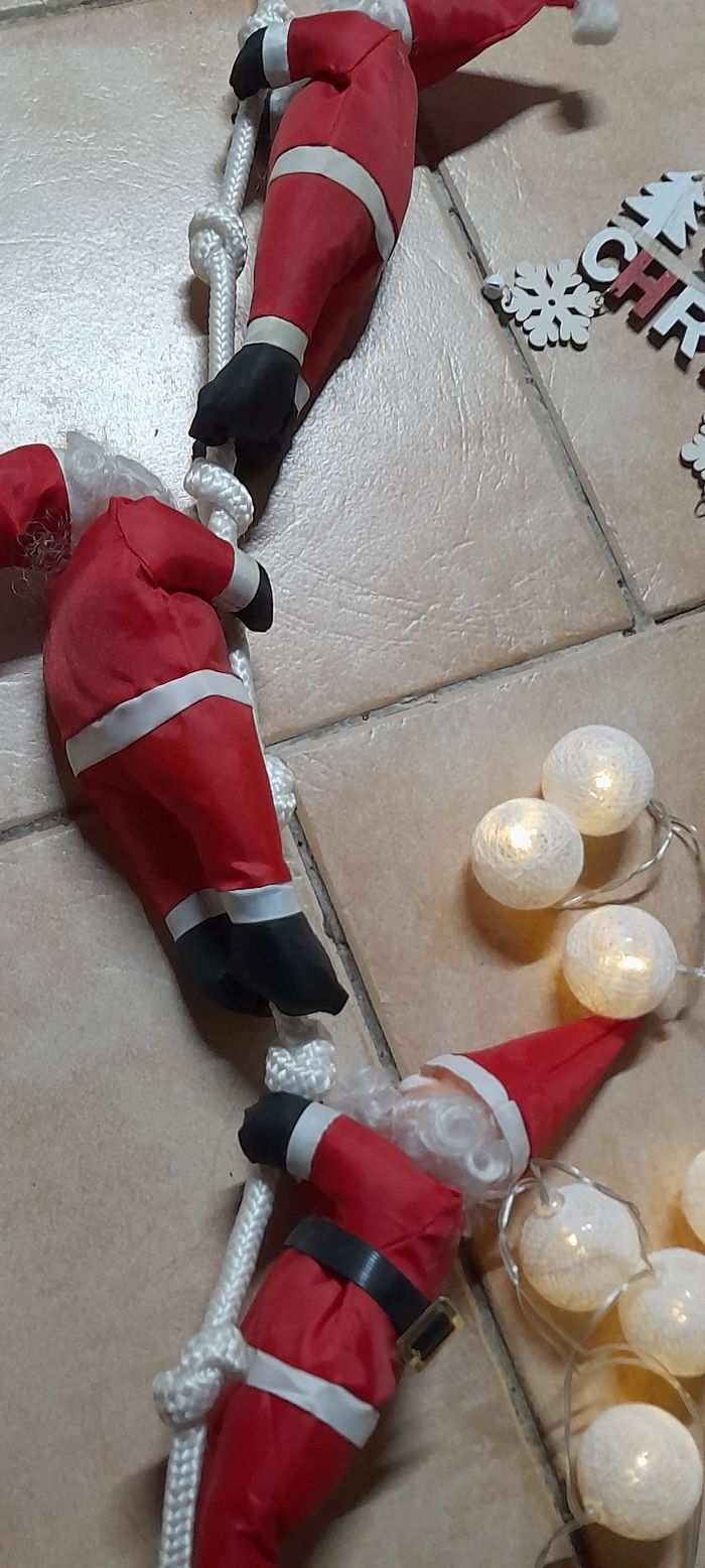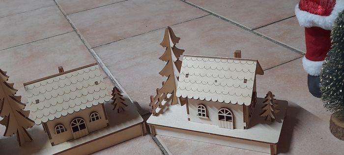 Deux pères Noël Guirlande lumineuse Deux maisons en bois Deux ornements