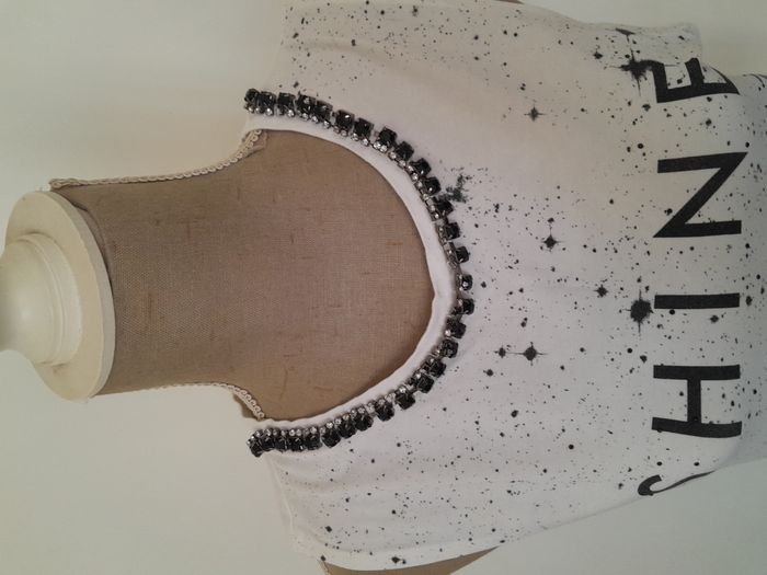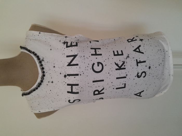 Débardeur, avec strass sur le cou, imprimé devant Longueur : 63cm Aiss / Aiss : 43cm Matière : 96 % Polyester, 4 % Elasthanne Marque : Moody's