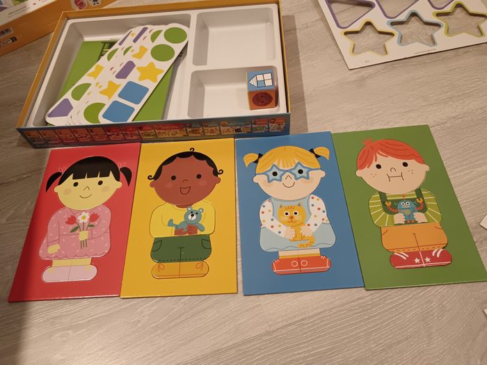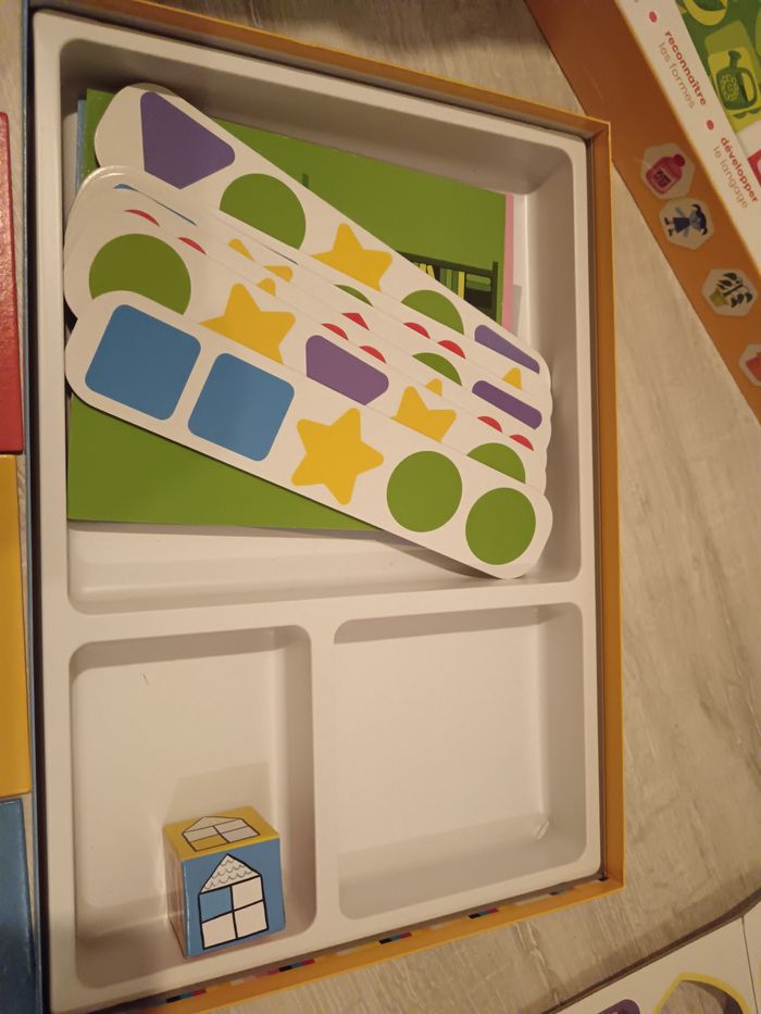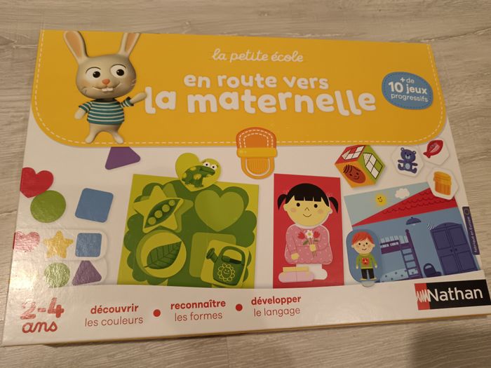Coffret multi jeu " En route pour la maternelle" Premier coffret de jeux éducatifs pour préparer l'entrée de l'enfant en petite section de Maternelle : le loto des couleurs et des formes, le jeu de la maison, le jeu de tri des couleurs et formes et le jeu des 4 amis. A partir de 2 ans. Excellent état, proche du neuf