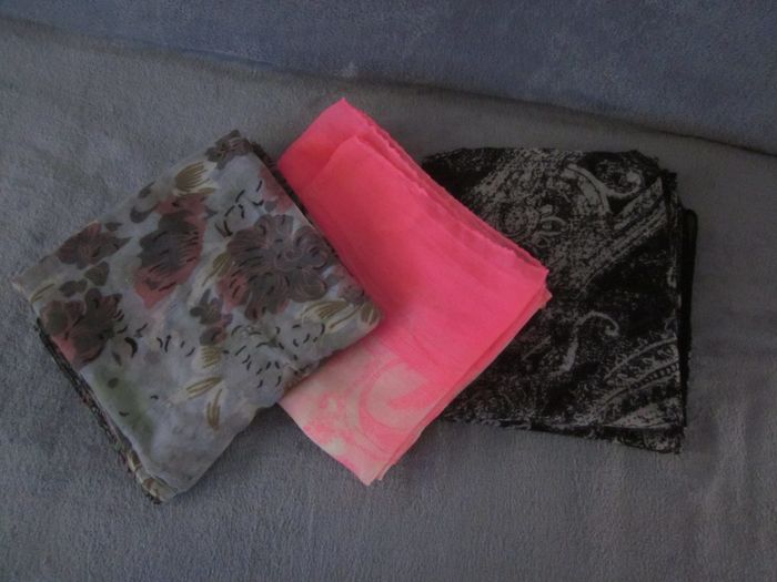 3 longues écharpes, fil tiré sur 2, type pachemina