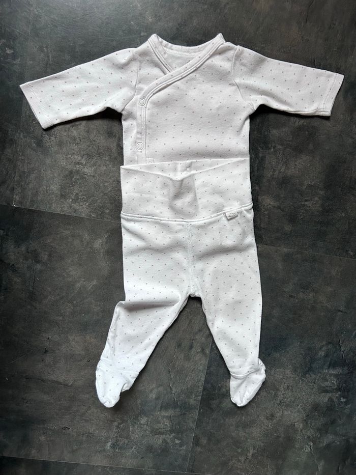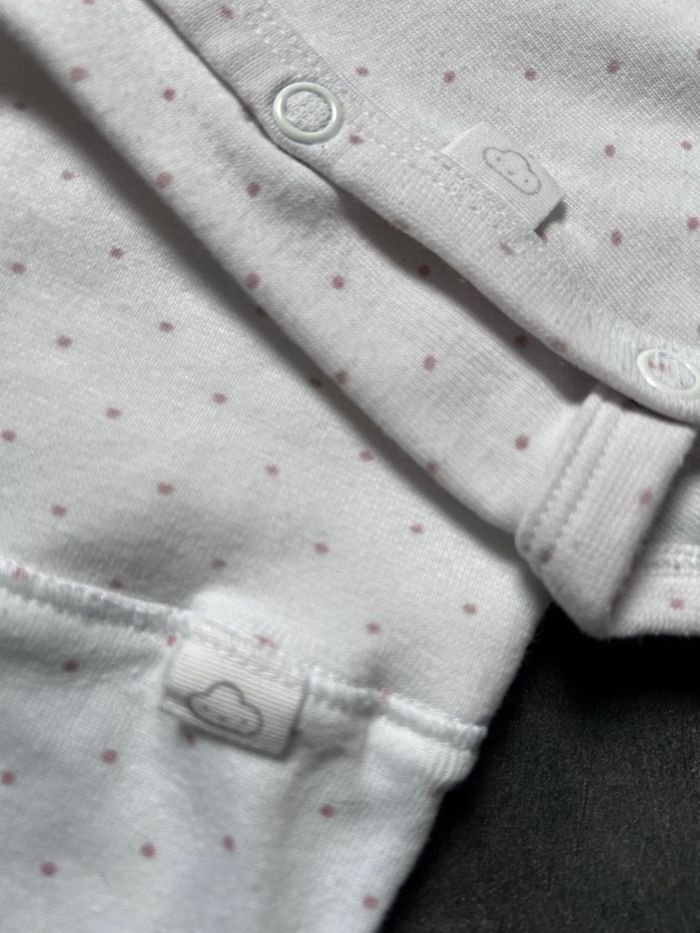 Ensemble Bodys cache cœur ouverture devant et caleçon avec pieds Taille 1 mois 56 cm 100% coton blanc à points roses H&M