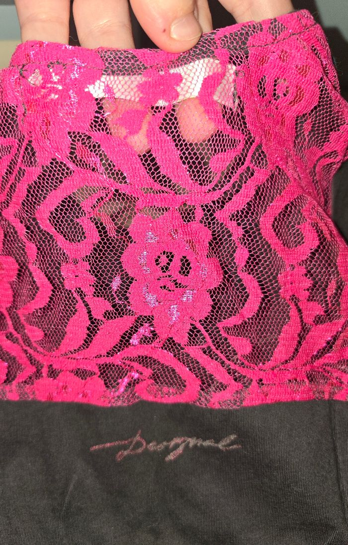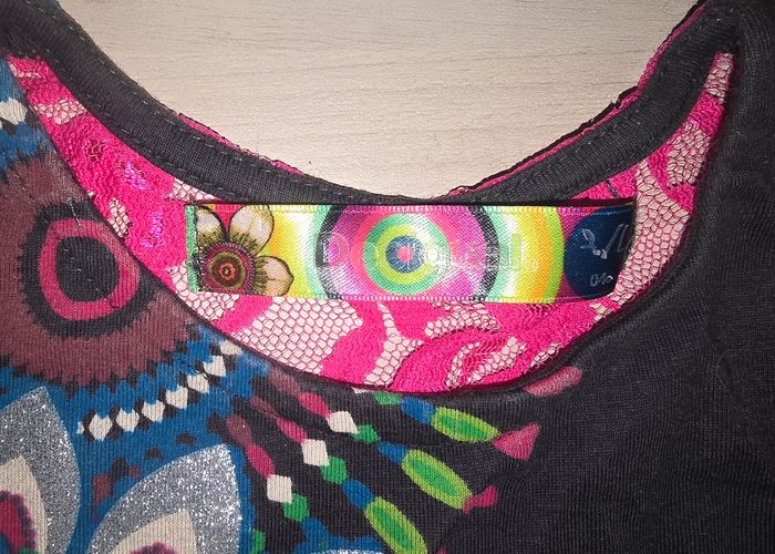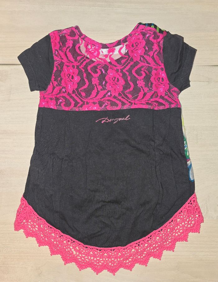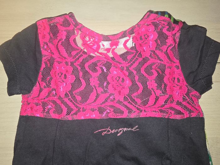 Tee shirt Desigual asymétrique très coloré, plus long derrière. Une partie du dos est en dentelle Taille : 3/4 ans Très bon état