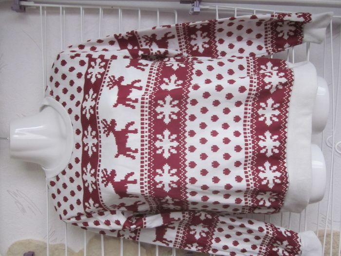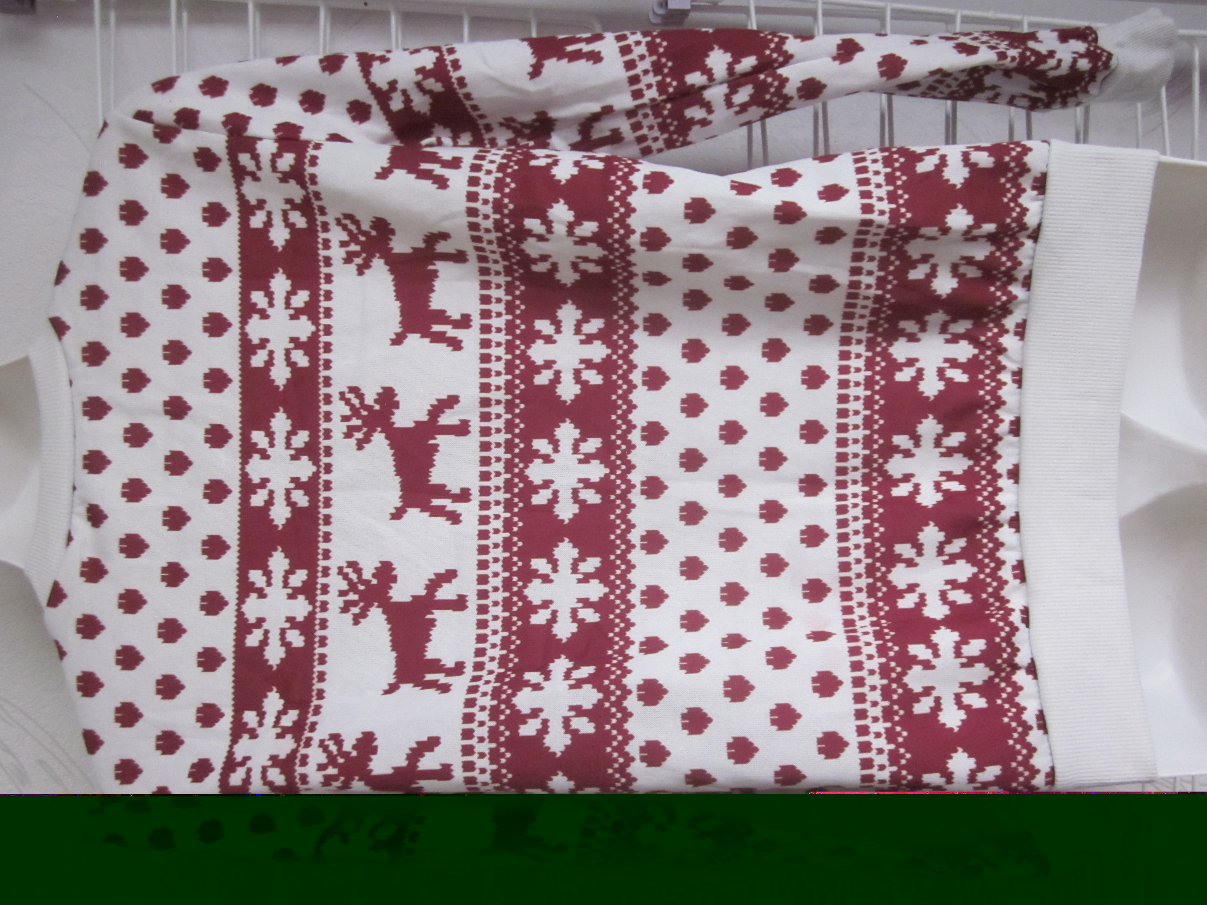M, pull/sweat ml, motifs rennes, décoloration à peine visible sur photos 3 et 4