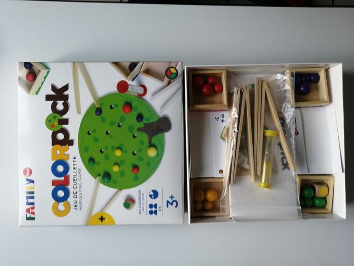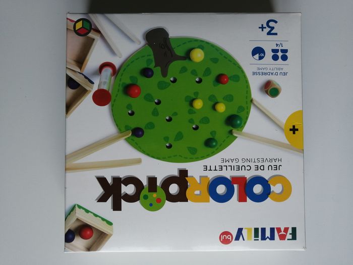 colorpick jeu de cueillette jeu d'adresse en bois avec règle du jeu à partir de 3 ans oxybull à noter que le sablier n'est pas celui d'origine