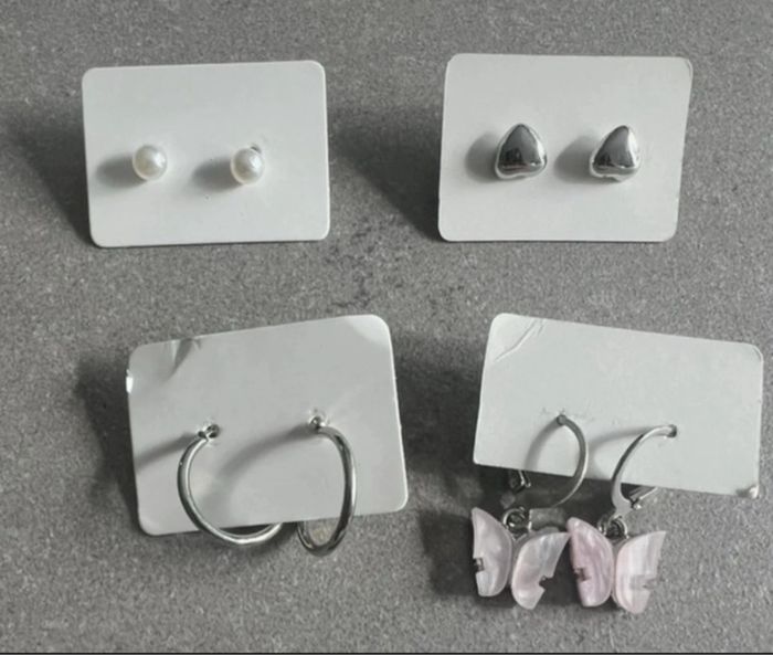 Lot de 4 paires de clous d'oreilles fantaisies hypoallergéniques - neufs Tige et attaches en acier inoxydable, Livrés dans une jolie pochette cadeau. - Profiter de lots pour compléter votre collection ! D'autres modèles neufs disponibles dans mon dressing,