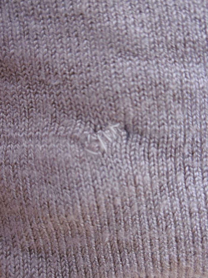 M, pull/tunique, manches 3/4 style chauve souris, doublure poitrine ajourée, petite reprise sous sein gauche (en gros plan sur photo 3 mais à peine visible sur la 1), d'où le petit prix