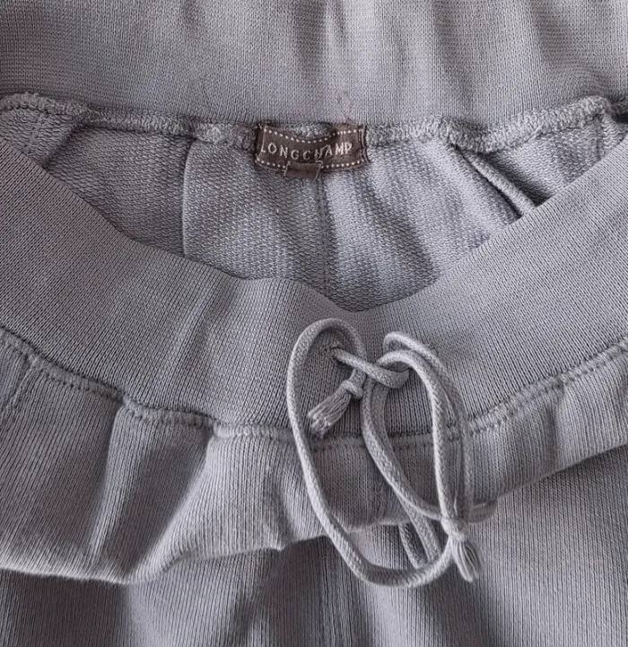 Jupe de marque Longchamp, taille S, 100% coton. Couleur gris, lanière. Longueur: 42cm