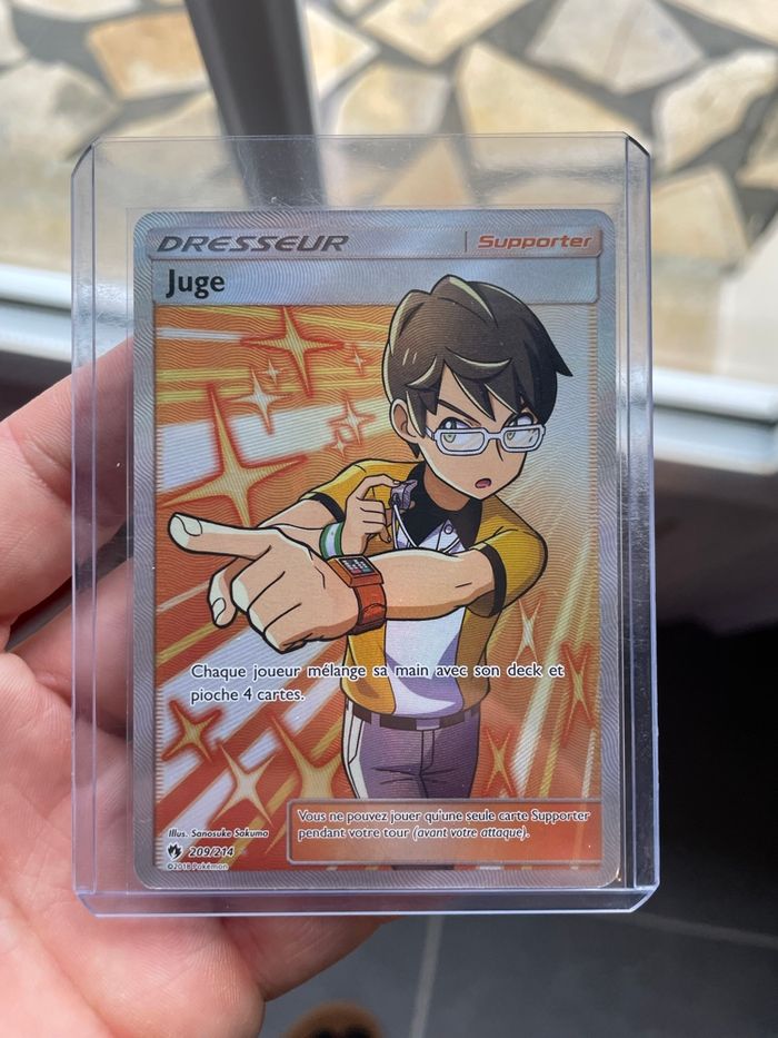 Pokémon carte en etat near mint sortie de booster sous sleeve et toplaoder, Dresseur Juge 209/214 209 Soleil et Lune - Tonnerre Perdu
