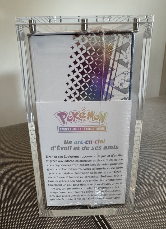 🔒 Neuf & Emballé – La protection que vous recevrez est 100% neuve, toujours dans son emballage d'origine (celle en photo est un modèle d'exposition). 🛡️ Protection Haute Qualité : Anti-UV ☀️ Anti-choc 💥 8 points magnétiques ultra solides 🧲 pour un maintien parfait 💡 Le coffret collection super premium prismatiques EV8.5 s’insère parfaitement dans cette protection – ajustement impeccable ! ⚠️ Attention : vente de la protection acrylique uniquement (le coffret collection super premium prismatiques EV8.5 n’est pas inclus). 📦 Envoi rapide et soigné 🚚📦 #Protection #SuperPremium #EvolutionsPrismatiques