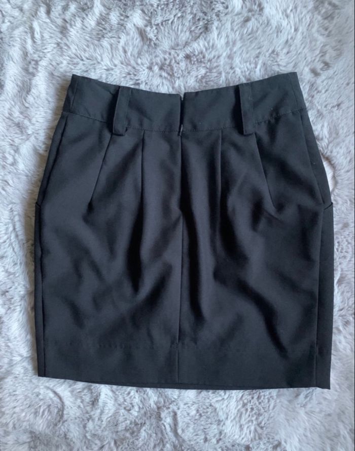 Jupe courte tailleur noire plissée au milieu avec poches Fermeture éclair à l’arrière Passants pour ceinture Taille 36 Excellent état