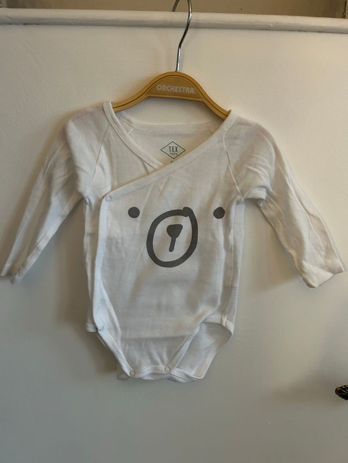Body de la marque tex baby Taille 6 mois Body mixte, ouverture sur le devant.