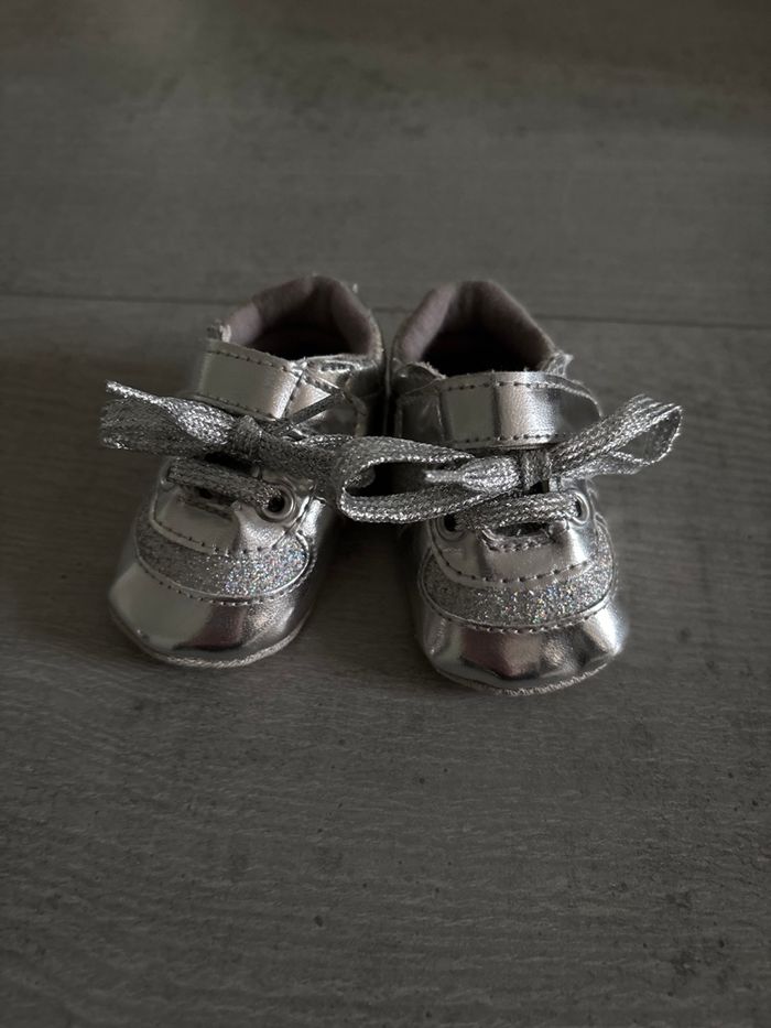 Chaussures bébé fille Grise pailletée En très bon état Très peu utilisé Taille 0/3M voir sur la photo