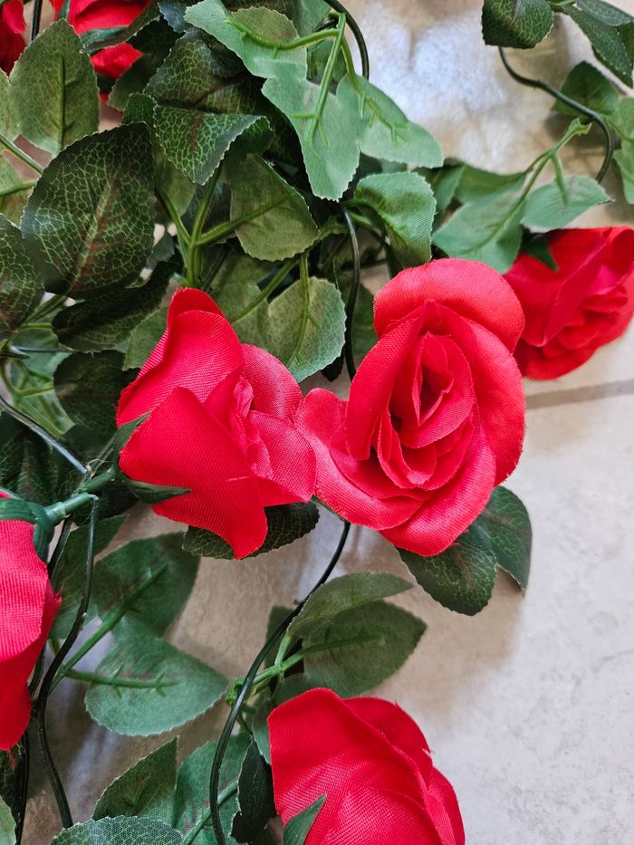 Lot de 2 guirlandes à suspendre - Roses rouges Très bon état Fleurs artificielles 90cm