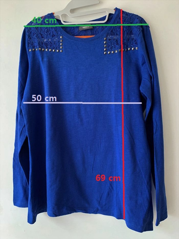 T-shirt bleu - Manches longues Taille : 40/L Matière : Coton Longueur : 69 cm - Largeur des épaules : 40 cm Longueur des manches : 63 cm Marque : C & A