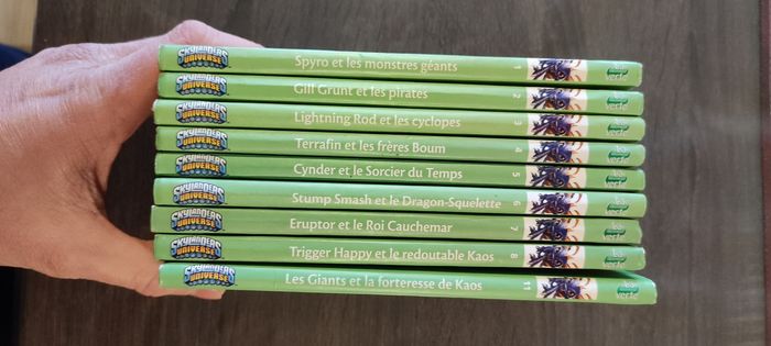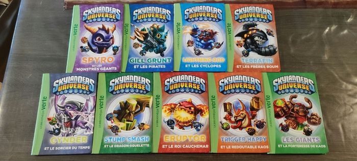 Bonjour Voici un lot de livres de la bibliothèque verte Skylanders comprenant les livres du numéro 1 à 9 + le 11. Nous n'avons pas le numéro 10. N'hésitez pas à me contacter pour plus de renseignements ou pour plus de photos. 15€ le lot Cordialement