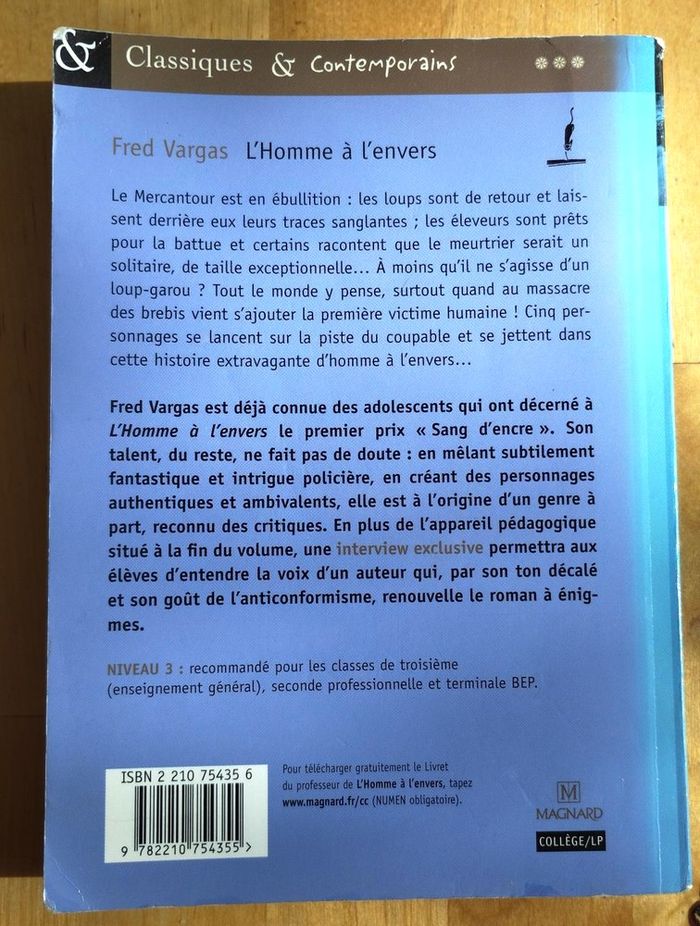 Lot de 3 romans policiers de Fred Vargas - Sous les vents de Neptune Collection Chemins Nocturnes - Viviane Hamy - Pars vite et reviens tard Collection Chemins Nocturnes - Viviane Hamy - L'homme à l'envers Collection Collège Editions Magnard avec après-texte Traces d'usure sur les couvertures des 3 livres