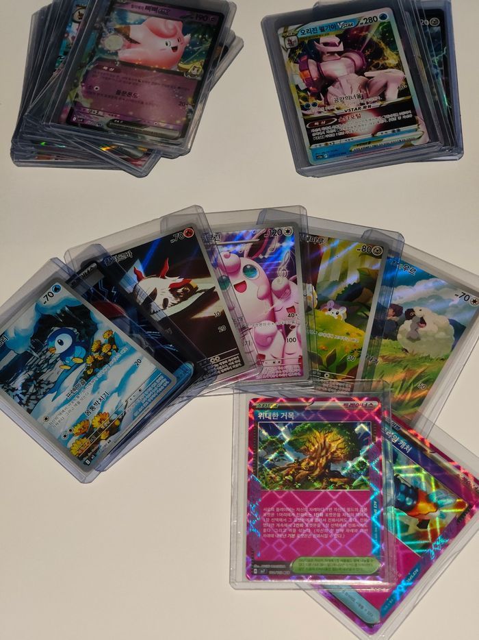 Découvre ton trésor dans ces boosters mystères. Plein de hits à gagner! 90% de chances de tomber sur des hits et 100% de tomber au moins sur une carte rare. Cartes 100% authentiques coréennes. Pas de doublons ou de cartes énergie. Parfait pour ceux qui veulent du vrai plaisir en ouvrant des boosters. Pour les grands et les petits. Chances de tomber sur des hits : 1/1 - R 1/2 - RR 1/3 - RRR 1/5 - AR/ACE JACKPOT - SR/SAR Cartes bien protégées pour le transport. Toutes les cartes sont en état NEUF/MINT et sous sleeve et toploader pour certaines. ❗ Envoi rapide et soignée. Préparation et envoi des colis filmés. Réductions sur les lots. ❗