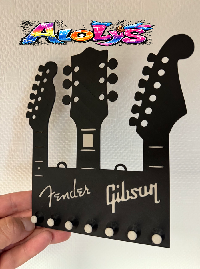 🎸 Porte-clés mural Guitare – Fender & Gibson – Impression 3D 🎸 Idéal pour les fans de musique et de rock 🎶 ! Ce porte-clés mural original reprend les célèbres têtes de guitares Fender et Gibson – à la fois pratique et déco ! 🎨 Couleur : noir avec détails blancs 📐 Dimensions : env. 17 x 18 cm 🪝 6 crochets solides pour accrocher clés, badges ou petits objets 🛠️ Facile à fixer au mur #fender #gibson #rockdecor #musicianlife #porteclesmural #decomurale #musiquedeco #impression3D #vintedfrance #decomusique #rockaddict #cadeaumusicien #guitaraddict Impression 3D 32