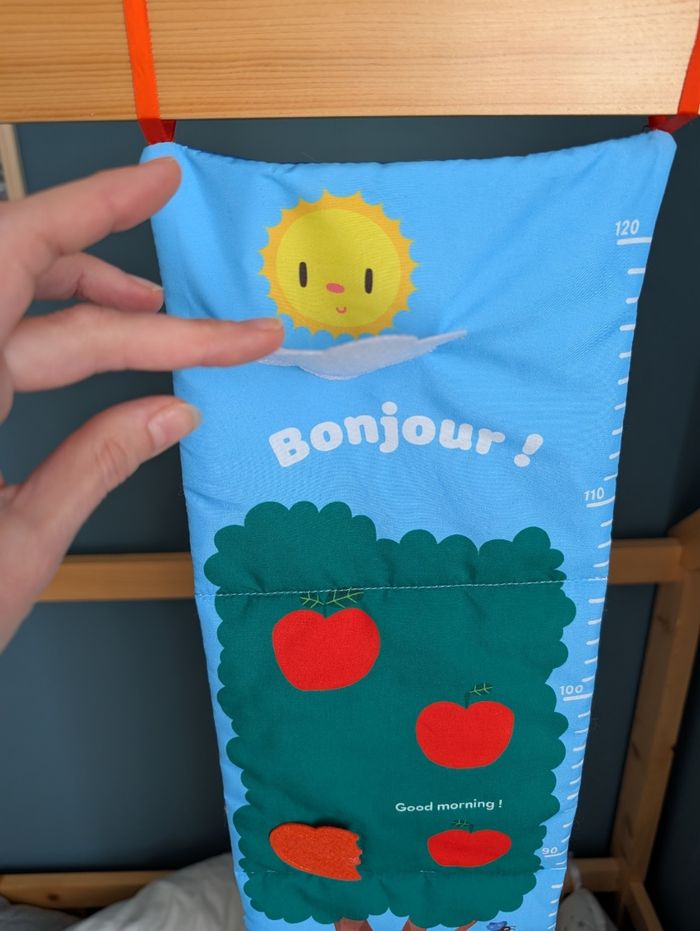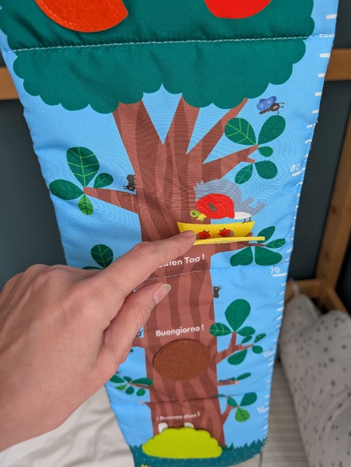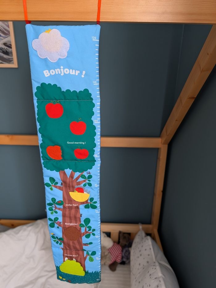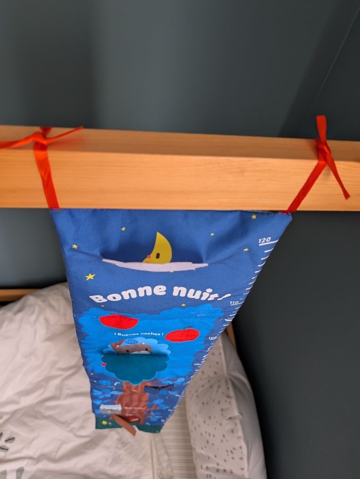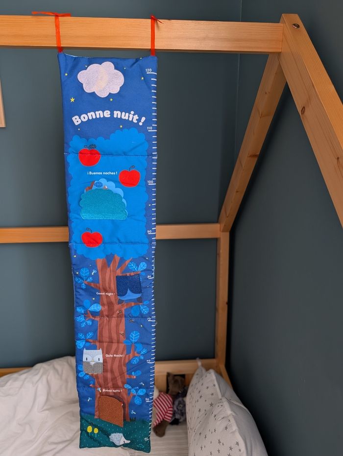 Jolie toise en tissu avec une graduation de 40 à 120 cm. 🧼 État : neuve, suspendue uniquement pour prendre les photos pour l'annonce. Détails : • Marque : Tourbillon • Toise murale en tissu • Des rubans pour suspendre la toise • Une impression reco verso pour découvrir la vie de l'arbre le jour et la nuit. • 10 flaps en feutrine pour observer les animaux dans l'arbre • Des mots pour s'amuser à dire "Bonjour" et "Bonne nuit" en 5 langues • Concept et illustrations : Laurence Jammes et Marc Clamens. Permet de mesurer la croissance de l’enfant de façon ludique, parfaite aussi comme idée cadeau de naissance ou d’anniversaire. 📦 Envoi rapide et soigné 📲 Questions bienvenues ! #Tourbillon #toiseenfant #toisebebe #decochambreenfant #cadeaunaissance #enfant #secondeMain #neuf