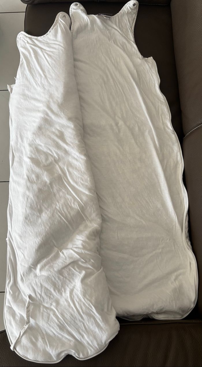 Je vends une gigoteuse hiver sans manches qui peut s’accrocher aux barreaux du lit de marque carré blanc allant jusqu’à 18mois pour 6€