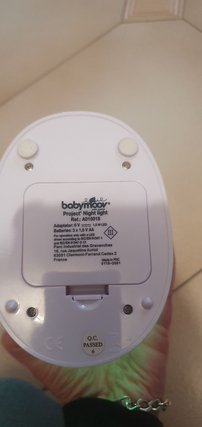 Vends cette veilleuse projecteur d'étoiles de la marque Babymoov. Idéale pour instaurer un rituel de coucher apaisant et aider bébé à s'endormir paisiblement. ​Caractéristiques principales : ​✨ Projection étoilée : Projette un joli ciel étoilé au plafond avec différentes couleurs changeantes. ​🎵 Musicale : Diffuse des berceuses douces (sons de la nature et mélodies). ​📱 Simple d'utilisation : Boutons intuitifs en façade pour régler le volume ou la musique. ​⏲️ Arrêt automatique : Se coupe seule après 45 minutes pour économiser l'énergie. ​🔋 Énergie : Piles fournies, la veilleuse est prête à l'emploi ! ​Infos complémentaires : ​État : très bon état.