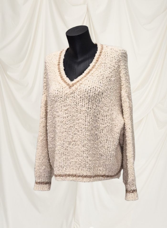 Pull grosses maille beige claire avec liseré beige